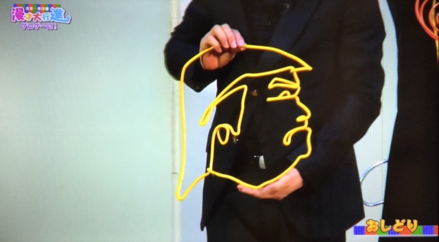 It looks like the Orange One made an appearance recently in the form of a wire sculpture in the act of the comedic duo Oshidori. The married couple of Ken and Mako are a musical and artistic comedy act that regularly performs at the Toyokan in Asakusa. While Mako plays the accordian and makes most of the jokes Ken bends colorful wires in various shapes, serving as punchlines for many of the jokes. It's not that surprising that the Twitterer-in-chief made an appearance as he is constantly in the news and Mako, a comedian who has recently made headlines as an independent journalist focusing on the Fukushima nuclear power plant disaster, has never shied away from politics. The pictures shown here are scenes from a local show that showcases Toyokan comedians.